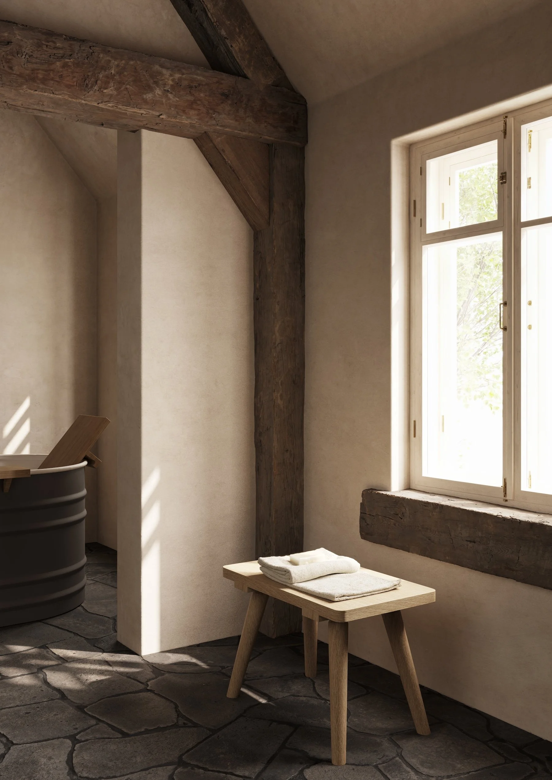 Lightweight and easy to move, the Shaken Stool works well in kitchens, living spaces, bedrooms, or hospitality settings. Made to order, it is intended for everyday use and to develop character over time through use and wear.
