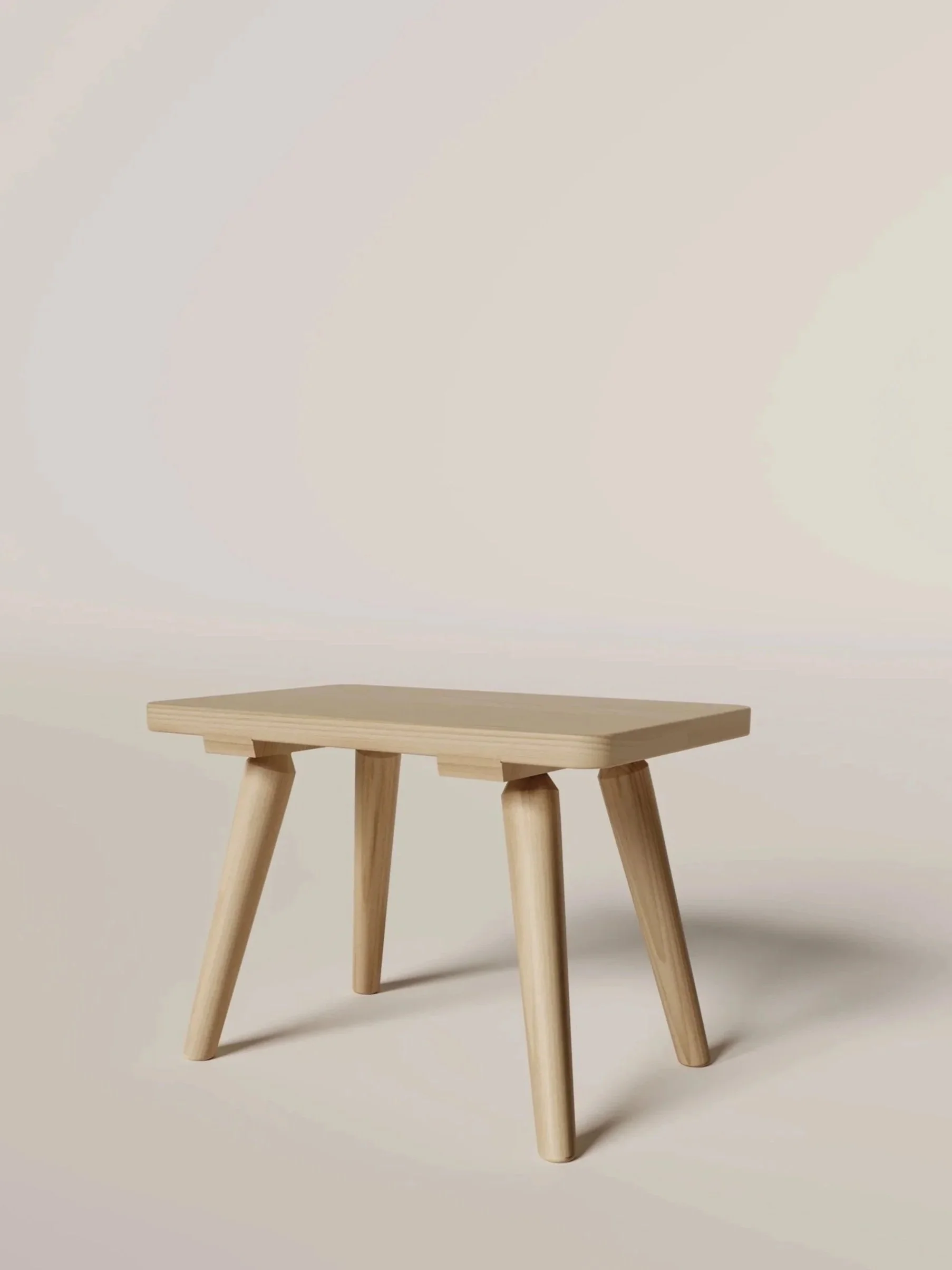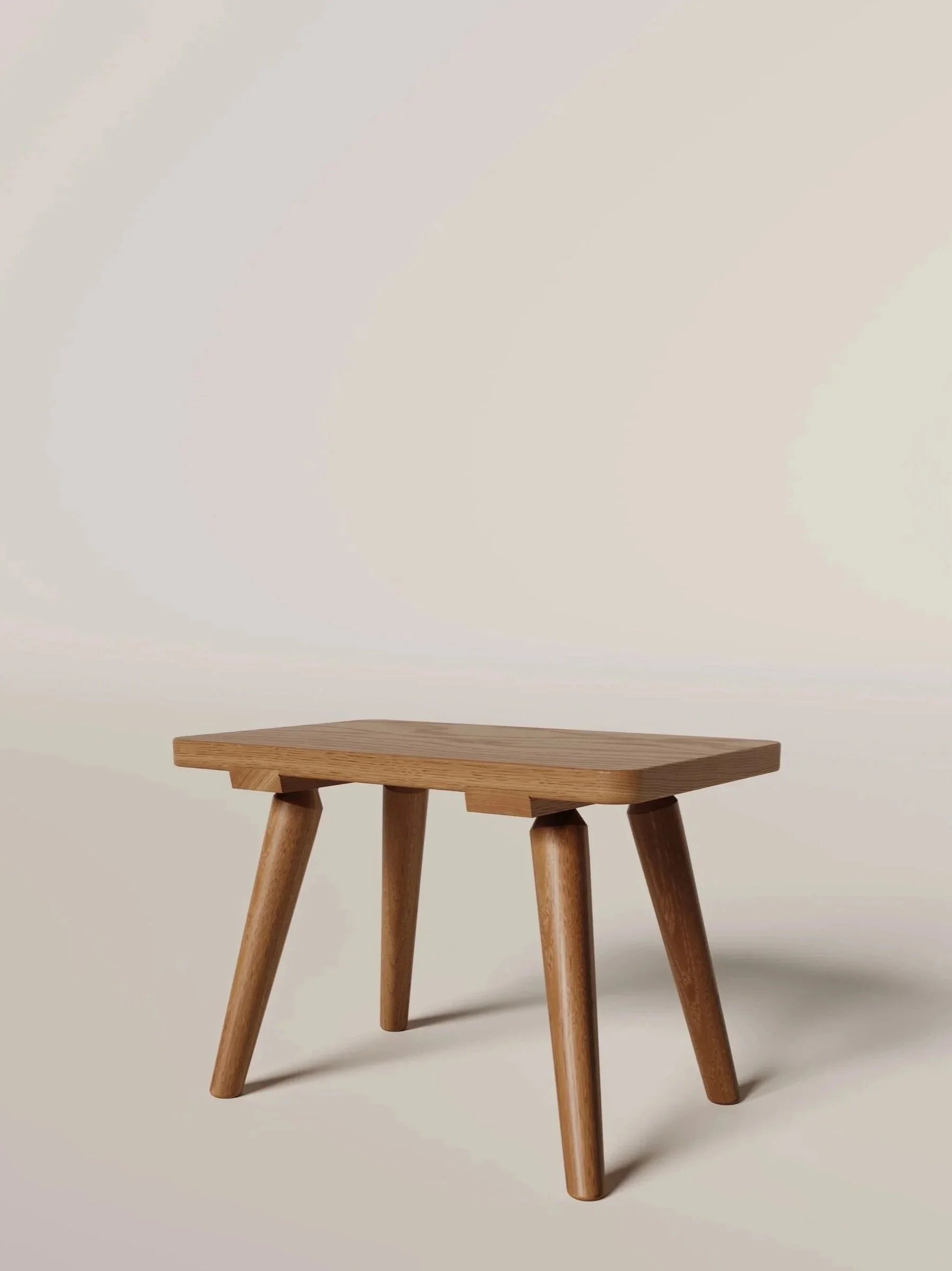 Built in solid wood using traditional joinery, the stool is designed for strength and stability despite its modest scale. Clean lines and honest construction emphasize material integrity and careful craftsmanship.